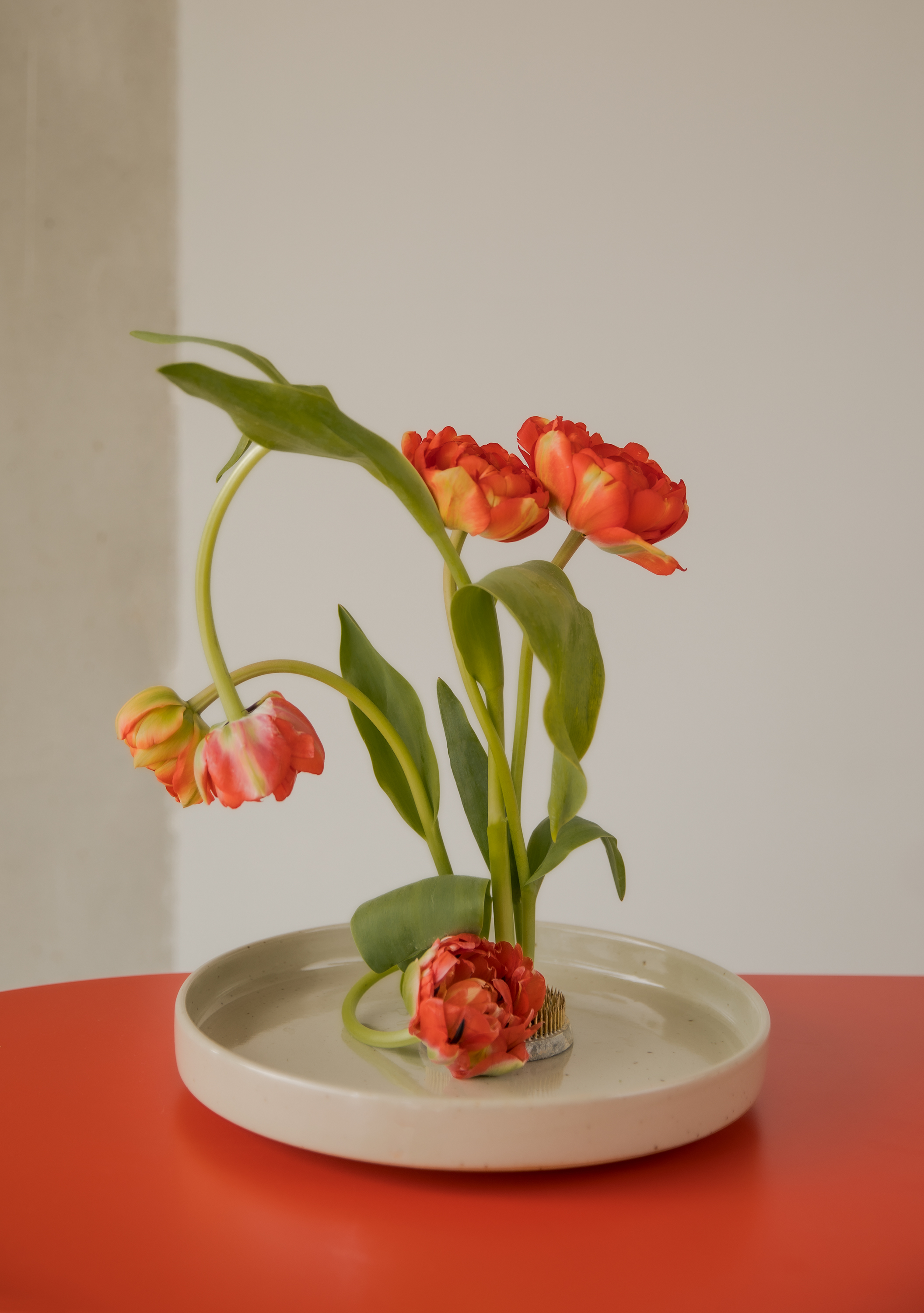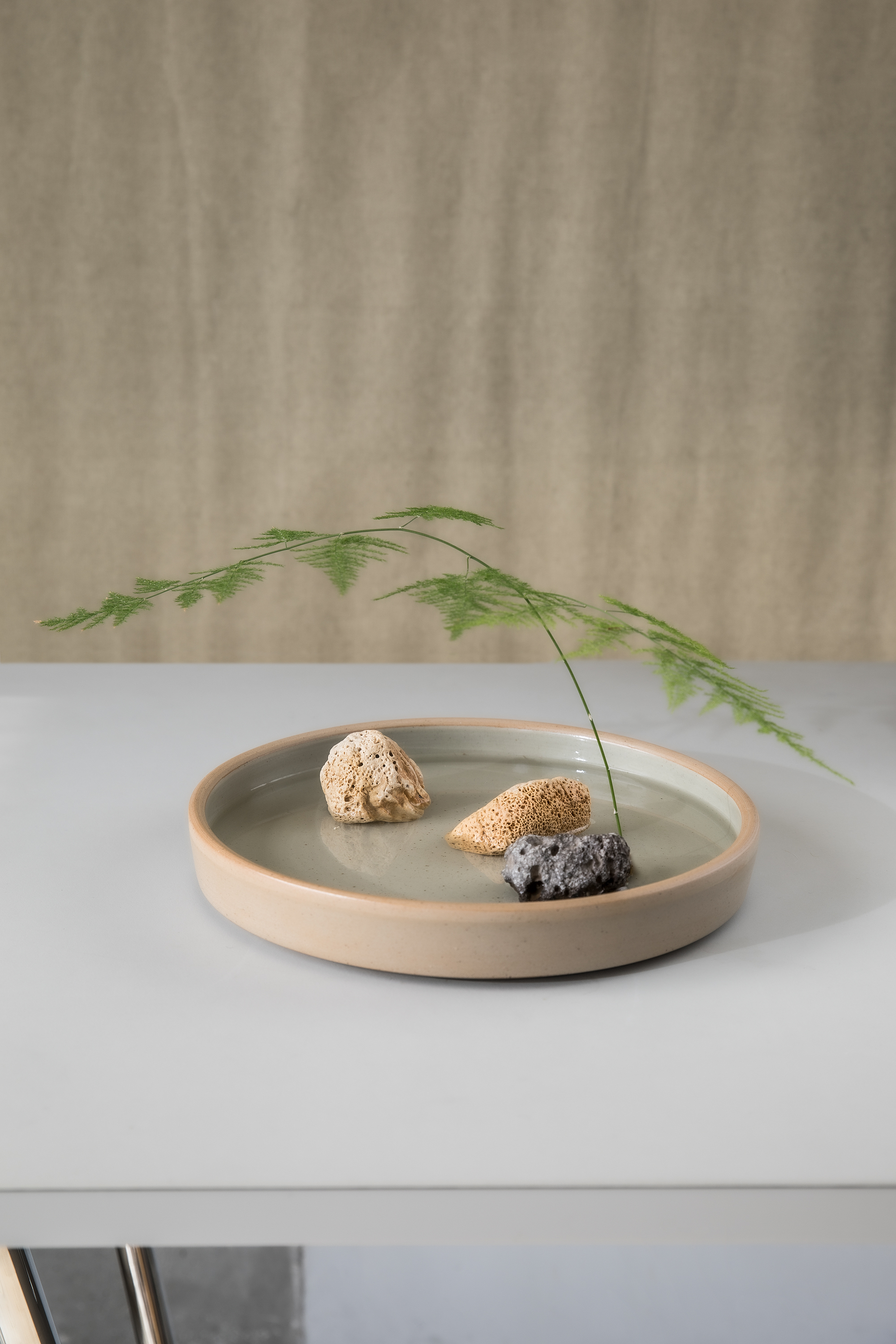 »Moribana Semi-Glazed« Large Ikebana Plate Bowl | Genuine Stoneware Ceramic