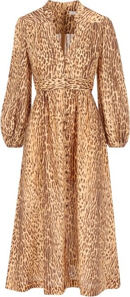 Zimmermann Leopard-Print V-Neck Dress
