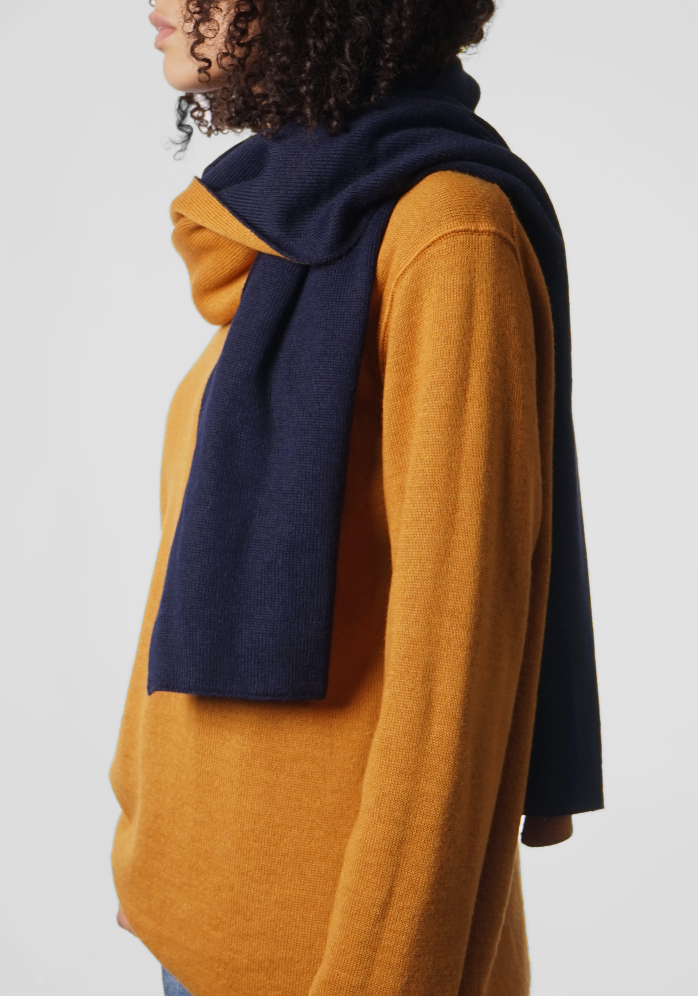 »Blauaras Mustard« Yellow Navy Reversible Scarf Alpaca